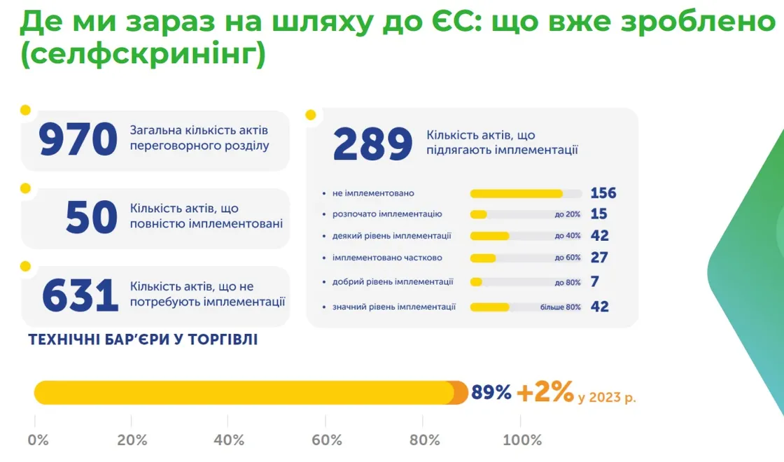 Прогрес у напрямку «Технічні бар’єри у торгівлі (рух товарів через кордон)»