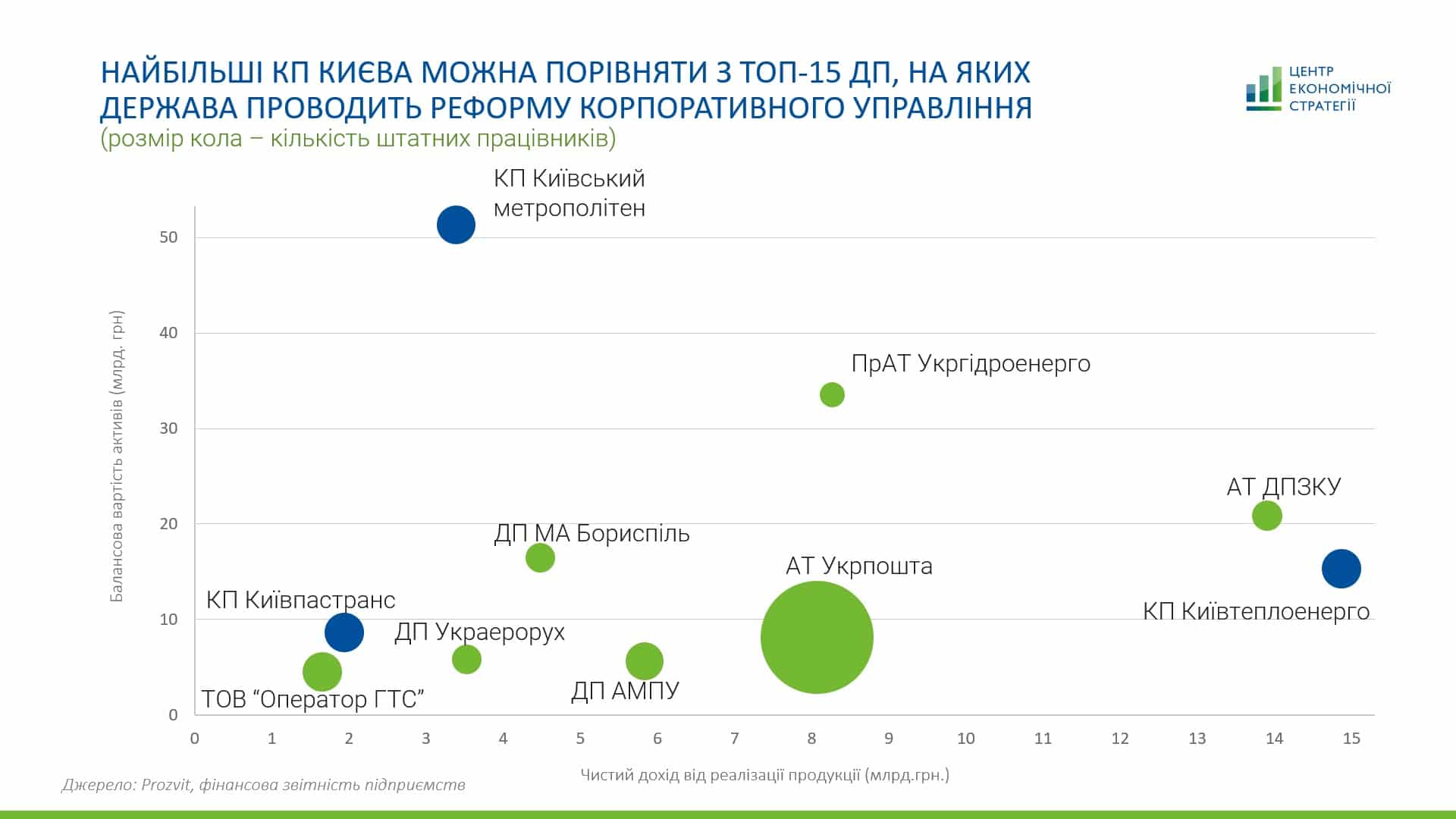 Серед справді важливих для киян комунальних підприємств є три величезні компанії: метрополітен, «Київпастранс» і «Київтеплоенерго». Якби вони перебували в державній власності, держава вже впроваджувала б у них реформу корпоративного управління, бо за розміром вони є порівнянними з найбільшими державними підприємствами (див. рис. 1).