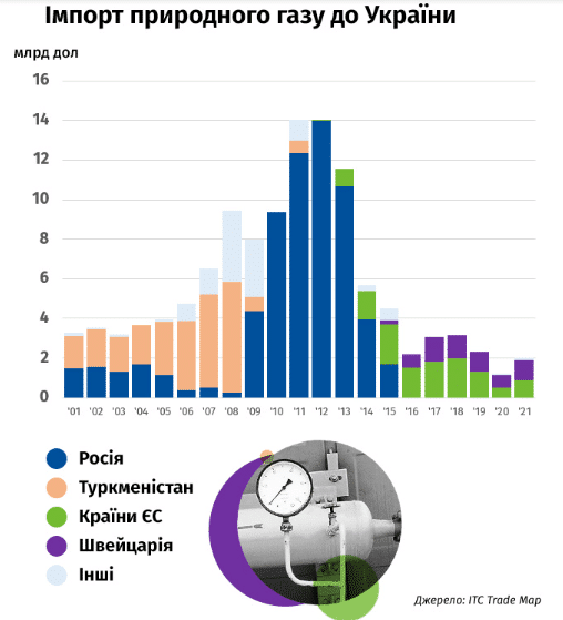 З листопада 2015 року Україна не купує газ у Росії напряму, а викуповує його на ринках країн ЄС, які перепродають Україні російське блакитне паливо.