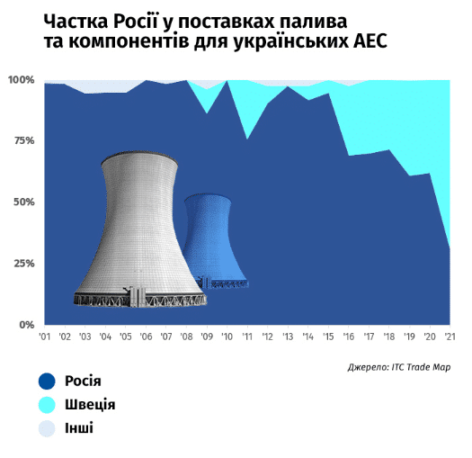 Довгий час Росія була єдиним постачальником палива для українських атомних станцій. У 2008 році Україна почала співпрацю з американською компанією Westinghouse, що поставляла паливо зі свого заводу у Швеції.