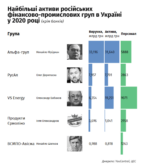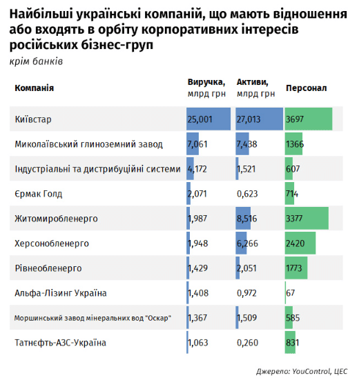 Попри загальний тренд на скорочення, в Україні ще достатньо великих компаній, які мають стосунок до російських бізнес-груп чи окремих бізнесменів.