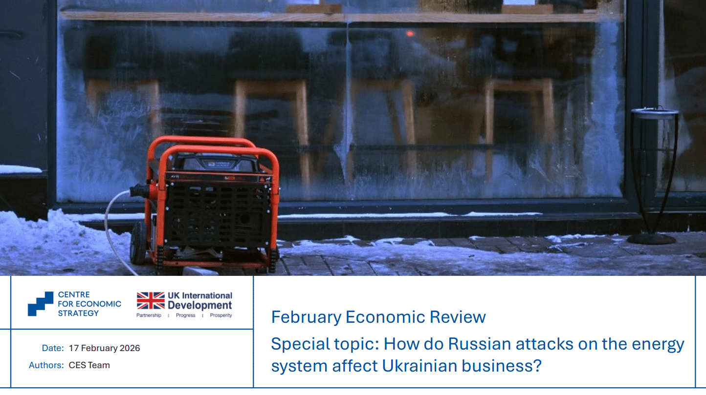 Із березня 2022 року Центр економічної стратегії (ЦЕС) щомісяця готує аналітичні огляди розвитку економіки України в умовах повномасштабної війни. Спеціальна тема цього випуску — «Як обстріли енергосистеми впливають на роботу бізнесу?».