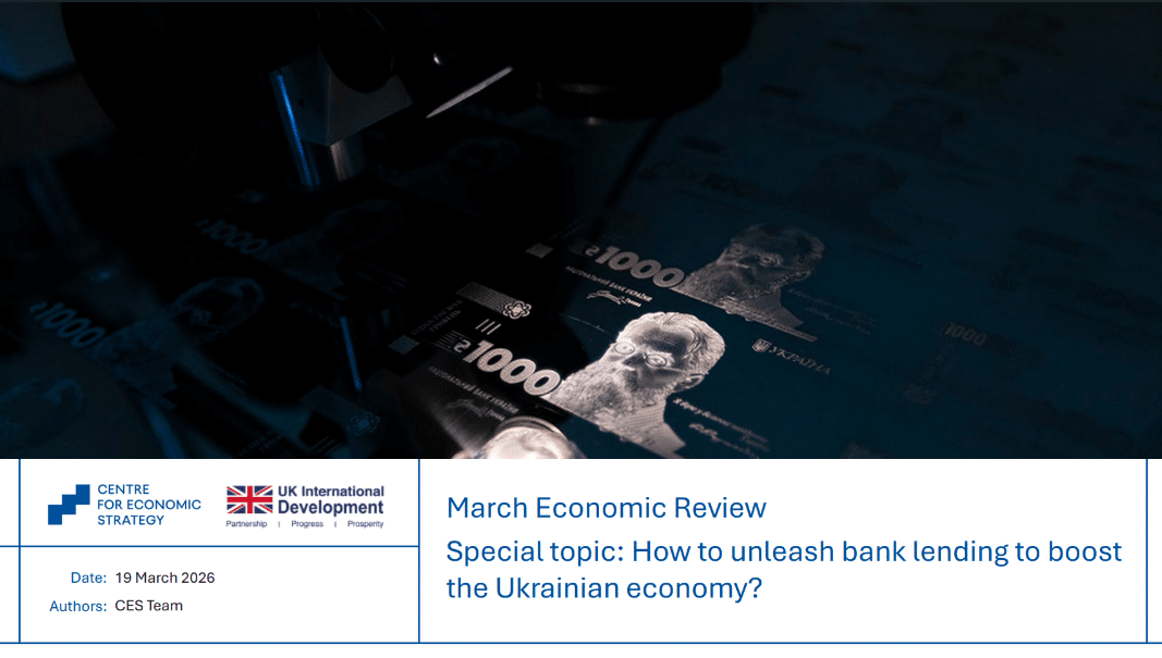 Із березня 2022 року Центр економічної стратегії (ЦЕС) щомісяця готує аналітичні огляди розвитку економіки України в умовах повномасштабної війни. Спеціальна тема цього випуску — «Як збільшити кредитування для бізнесу?».