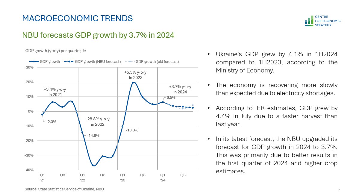- Macroeconomic trends: The NBU upgraded its forecast for GDP growth in 2024 to 3.7%. Business expectations slightly improved, but negativity still prevailed among businesses in all sectors surveyed. Power outages remained a challenge for all industries, but businesses are gradually adapting to the situation.