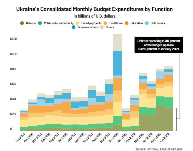 Russia’s invasion has wrecked the economy, and foreign aid is not enough to cover the gap. War-related expenditures have skyrocketed, and all other spending is being kept at a bare minimum.