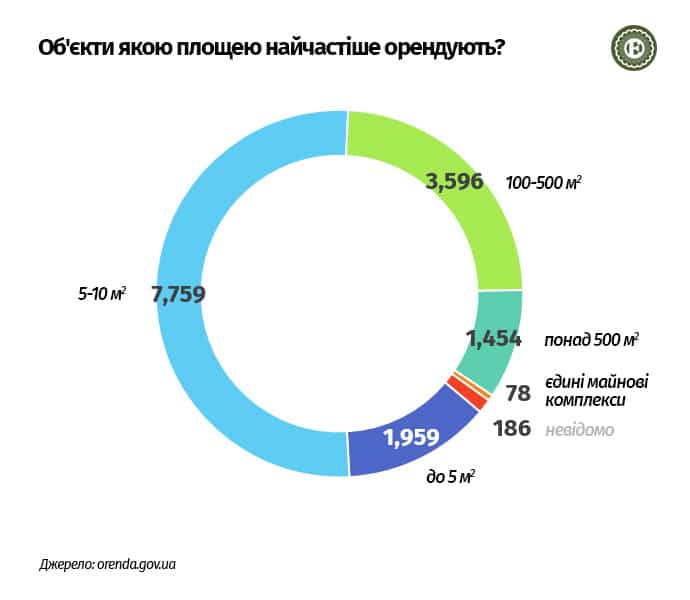 Із загальної кількості договорів кожен сьомий – на об’єкти менші ніж 5 квадратних метрів. Зазвичай, це вишки операторів мобільного зв’язку на дахах державних будівель, банкомати або кавові автомати.