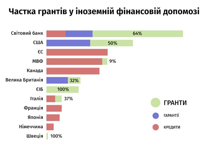 Гранти є найбільш бажаними, оскільки вони не збільшують борговий тягар України. Це безповоротна допомога країні, що перебуває у воєнному стані.